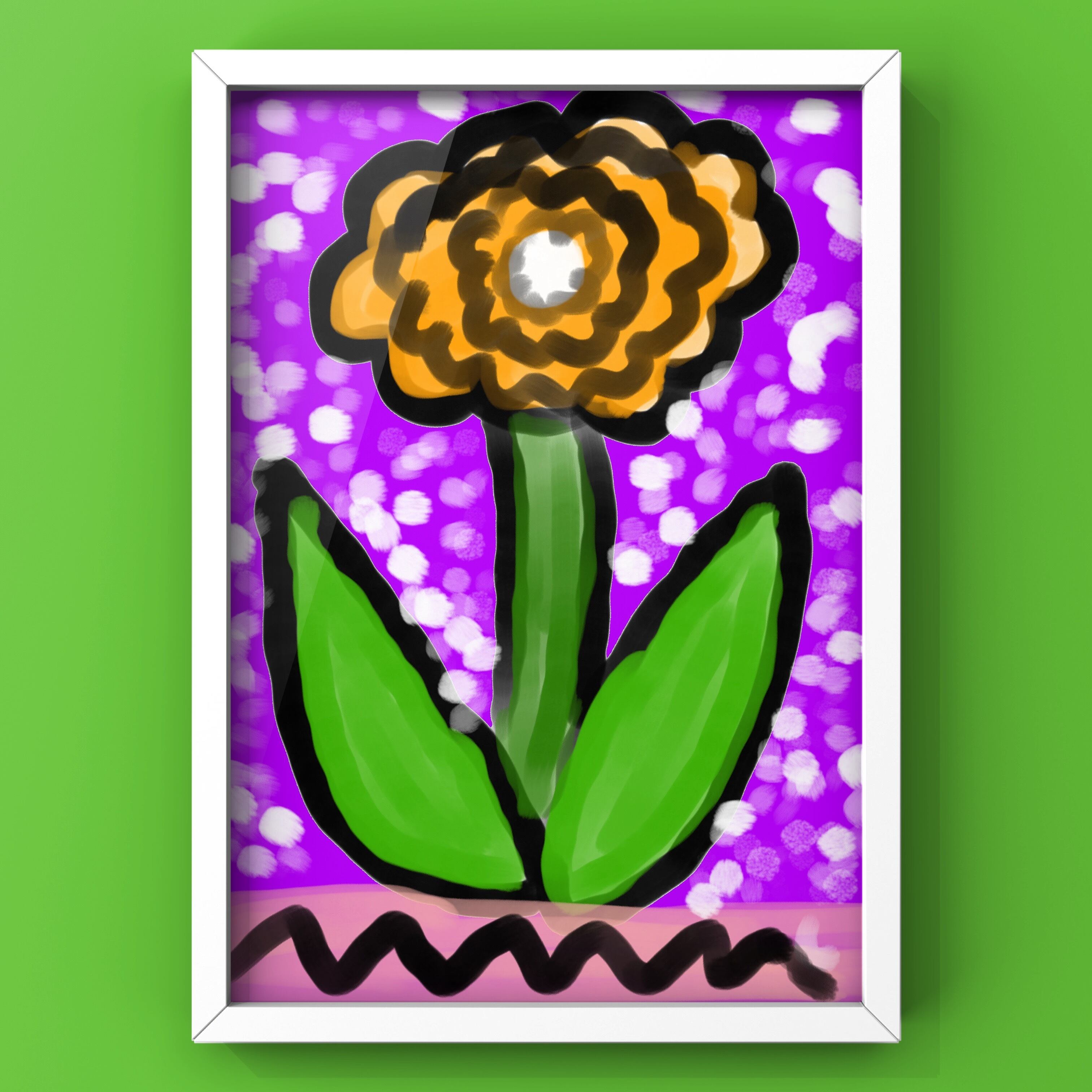 A4サイズ。画用紙にプリントして、額装してお届けします。ペンでサインを書きます。